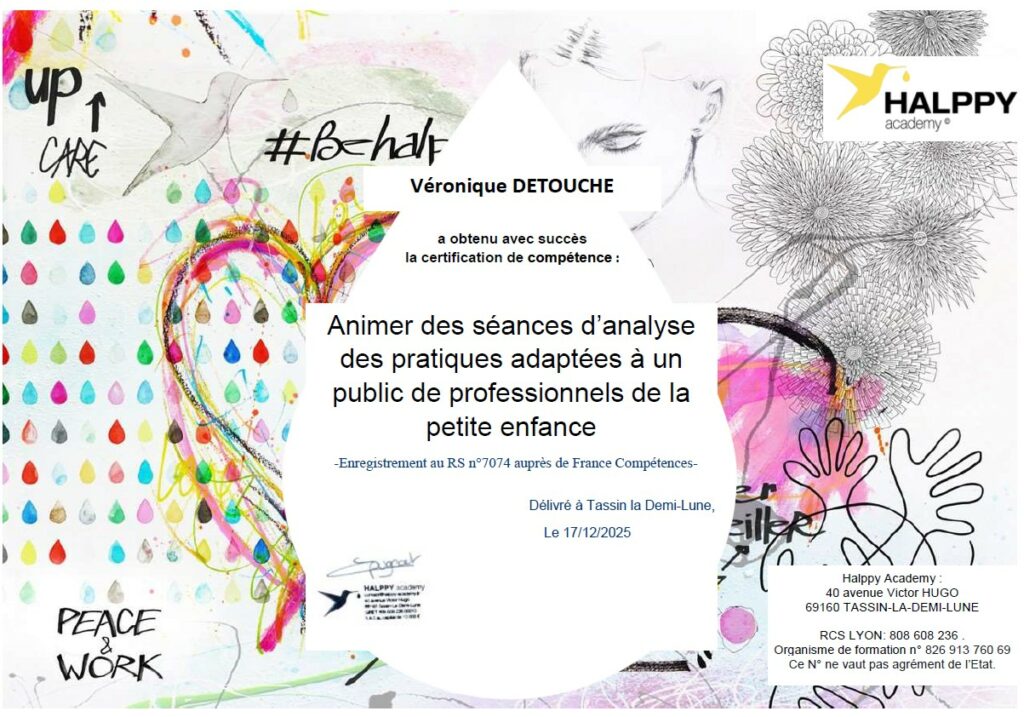 Animer des séances d’analyse de la pratique professionnelle ne s’improvise pas. Ces temps d’échange, essentiels au développement des compétences et à la qualité de l’accompagnement, nécessitent une posture, des outils et un cadre sécurisant que seule une formation spécifique permet d’acquérir. Être formée, c’est savoir instaurer un climat de confiance, favoriser la parole de chacun et garantir le respect des règles éthiques et déontologiques. Ce chemin de formation, je l’ai emprunté il y a 3 ans.